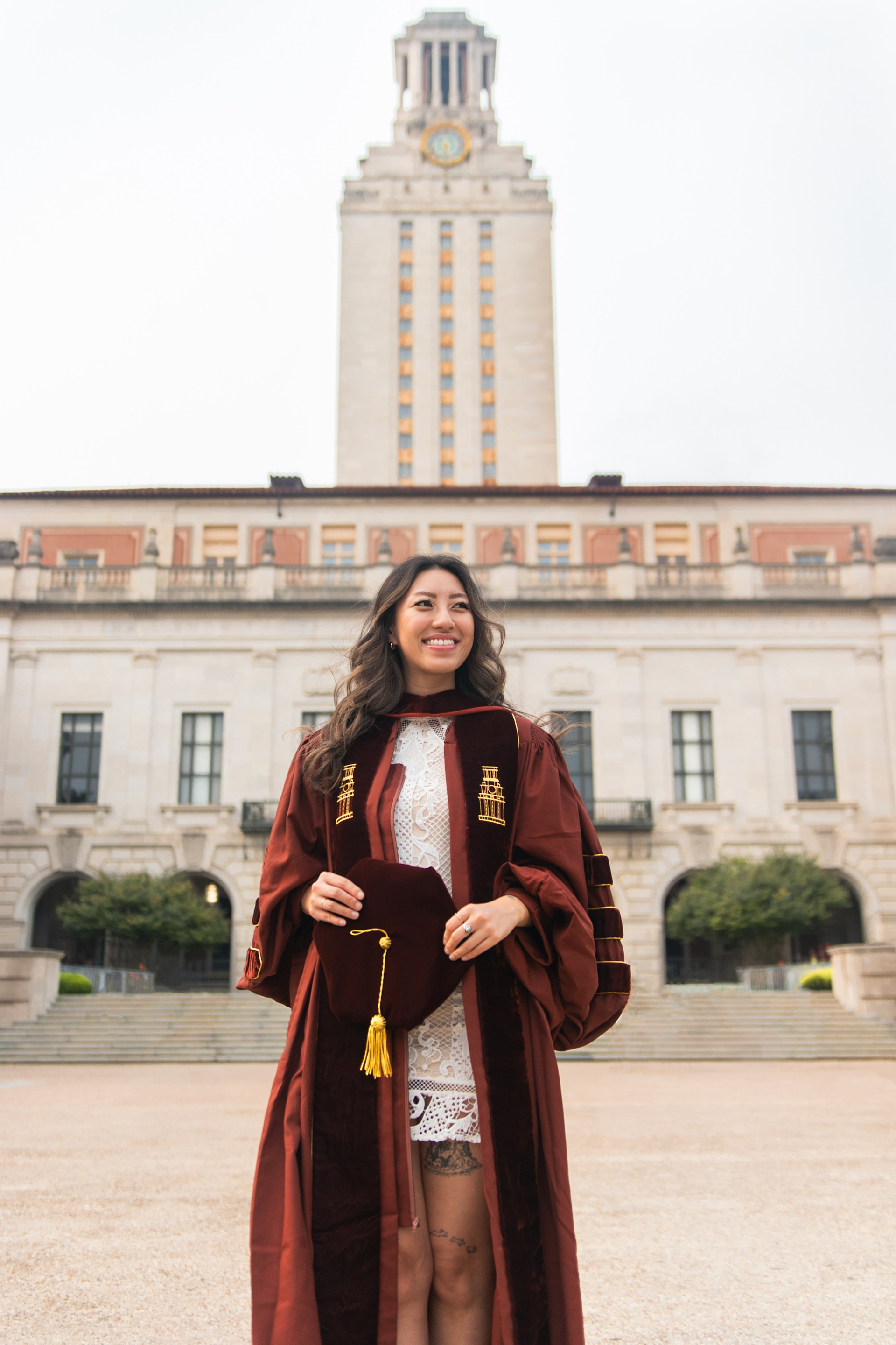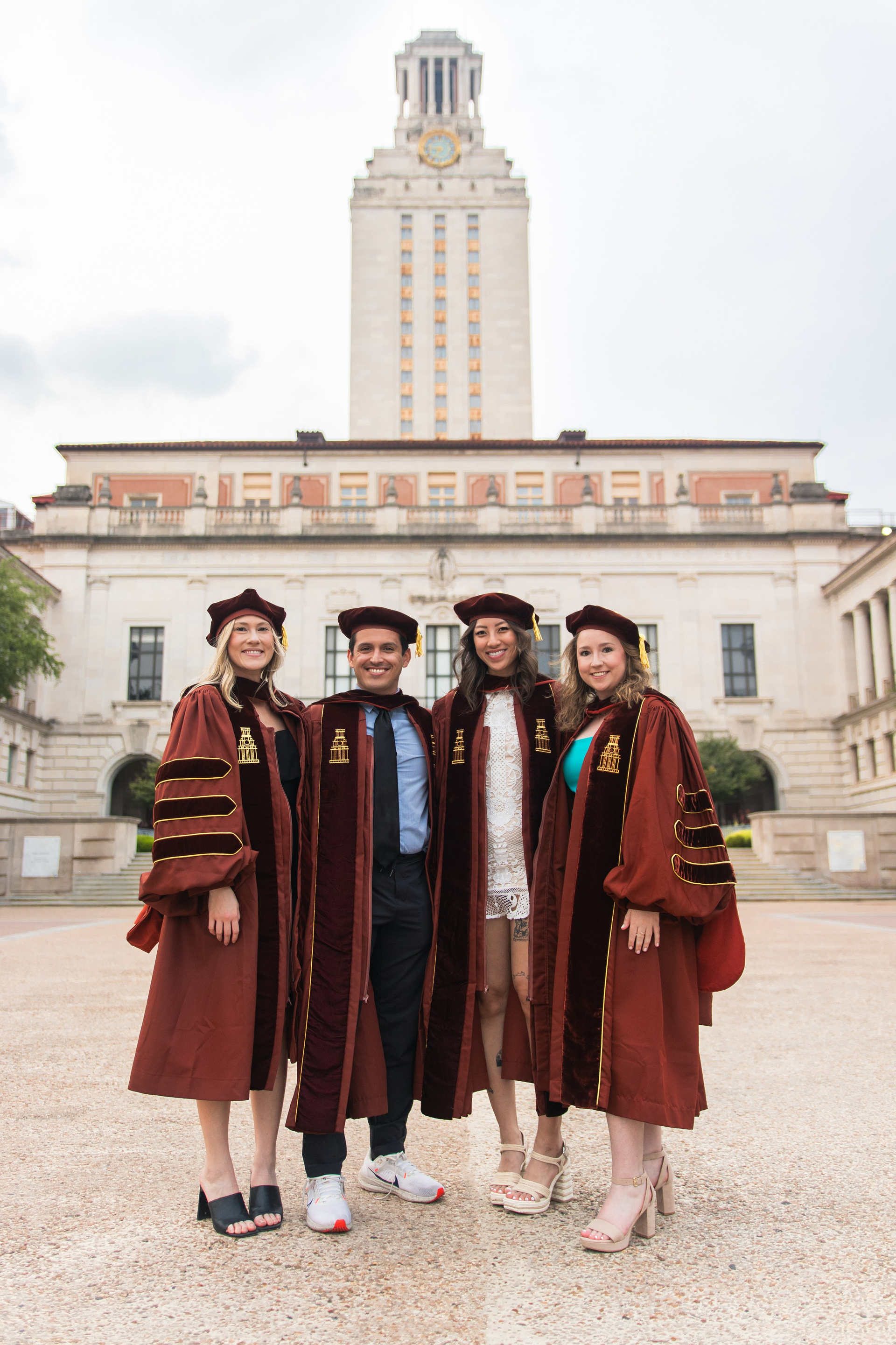 Group graduation photoshoot at the University of Texas Austin